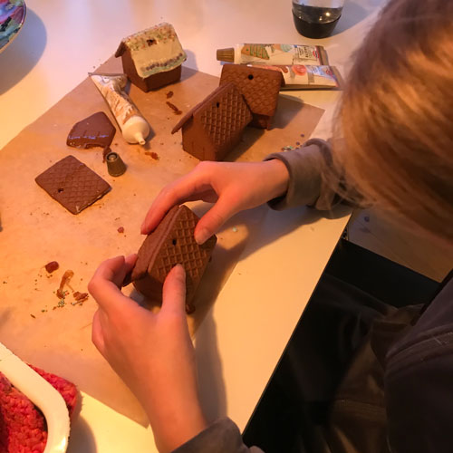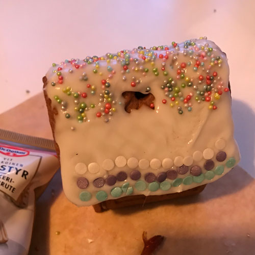 För att det inte skulle bli så mycket snöre på pepparkakan tog vi en liten pinne för att kakan skulle sitta sitta snyggt.